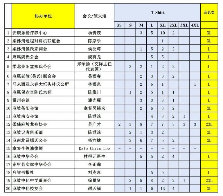 衬衫分配 ( 协办单位 )