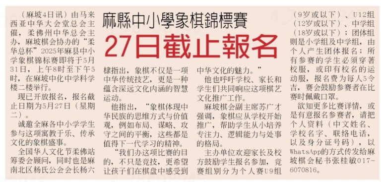 柔总杯象棋锦标赛 ( 中国报 C 5 ) ☞ 5/5/2025
